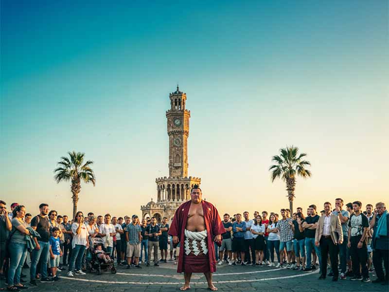 İzmir Saat Kulesi önünde sumocu – https://www.youtube.com/watch?v=Z07NYqUFJjg