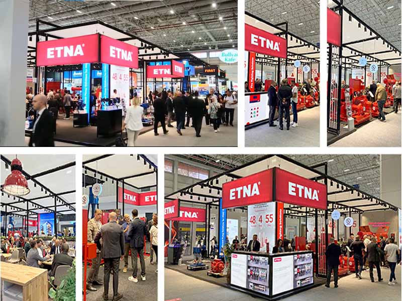 ETNA, fuar boyunca başta UL listeli & FM onaylı yangın pompaları ve TS EN 12845 standardına uygun yangın pompaları olmak üzere; HIZIR mobil yangın söndürme ve su taşkını boşaltma pompası, frekans kontrollü ıslak ve kuru rotorlu sirkülasyon pompaları, döküm ve komple paslanmaz çelik çok kademeli santrifüj pompa ve hidrofor sistemleri, drenaj pompaları ve kendi dizaynı olan koruma kontrol panolarını ziyaretçilerle buluşturdu.