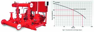 Maksimum Yük: Yangın pompası eğrisi, anma debisinin %150 kapasite değerini sağlamalıdır ve %150 debi kapasitesindeki basınç değeri, anma basıncının %65’in den az olamaz. “Eğri 1” de eğri limit değerleri gözükmektedir.