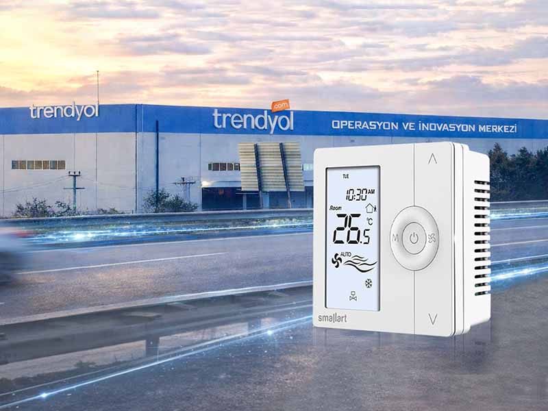 Gebze’de faaliyet gösteren Trendyol Operasyon ve İnovasyon Merkezi’nin iç mekân iklimlendirme kontrolünde Smallart SM2103 Serisi fan coil termostatları kullanıldı. Proje kapsamında tercih edilen SM2103-SDM modeli, kullanıcı konforunu artırırken enerji verimliliğine de katkı sunuyor. Türkiye’nin önde gelen e-ticaret platformlarından Trendyol tarafından Gebze’de kurulan Operasyon ve İnovasyon Merkezi’nde, iç mekân iklimlendirme sistemlerinin kontrolü için Smallart çözümleri […]