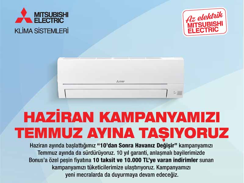 Mitsubishi Electric Türkiye Klima Sistemleri, avantajlarla dolu kampanyalarını temmuz ayında da sürdürüyor. Klimalarda Bonus özellikli anlaşmalı bireysel kredi kartlarına vade farksız 10 taksit imkânı sunulmasının yanı sıra 3 yıla ek 7 yıl ile toplamda 10 yıl garanti fırsatı ve tüm HareME klima modellerinde 10.000 TL’ye varan indirim, temmuz boyunca tüketicilerle buluşmaya devam ediyor. Geniş […]