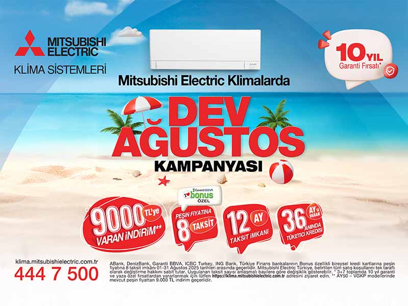 Mitsubishi Electric Türkiye Klima Sistemleri, müşteri memnuniyetini odağına alan yaklaşımını sürdürüyor. Bu doğrultuda, klimalarını tüketicilerle avantajlı koşullarda buluşturmaya devam ediyor. Ağustos ayına özel kampanya kapsamında; tüm Mitsubishi Electric klimalarda 9.000 TL’ye varan indirim, 12 aya varan taksit imkânı, Bonus özellikli bireysel kredi kartlarına vade farksız 8 taksit, 36 aya varan tüketici kredisi ve 3 yıla […]