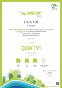 Yeşil Sertifika sürecinde binalar, Bütünleşik Bina Tasarım, Yapım ve Yönetimi, Yapı Malzemesi ve Yaşam Döngüsü Değerlendirmesi, İç Ortam Kalitesi, Enerji Kullanımı ve Verimliliği, Su ve Atık Yönetimi başlıklarında değerlendirilir ve Yeşil Sertifika almaya hak kazanan binalar puanlarına göre “GEÇER”, “İYİ”, “ÇOK İYİ” ve “ULUSAL ÜSTÜNLÜK” seviyelerinde sertifikası alma hakkı kazanır.